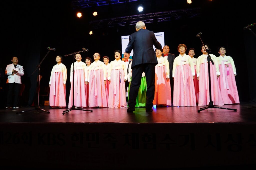 일 알마티에서 열린 제26회 KBS한민족체험수기 시상식 후 축하공연에서 비단길 합창단이 노래하고 있다.