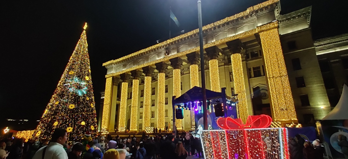 ▲ 12월 31일 밤이 되면 광장과 거리에서 공연과 축제 분위기가 조성되고, 자정에는 대규모 불꽃놀이가 이어진다. 아이들은 러시아 ‘제드 마로스’에 해당하는 ‘아야즈 아타’ 와 그의 동행 캐릭터인 ‘눈 소녀’를 기다리며 선물을 기대한다. 사진은 알마티의 구광장에서 벌어진 새해 맞이 콘서트 장면 (사진 = 김상욱 제공)